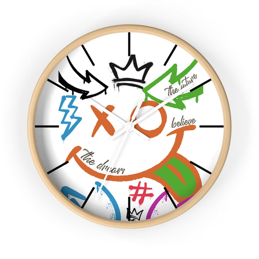 Wall Clock - The Dreamer Collection, Motivational, Colorful, Graffiti Street Art Trendy Design